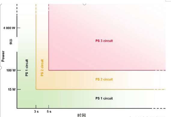 按照圖35,最不利的功率源故障的功率測量:PS1:功率源在3秒后測量值不超過15W的電路PS2:功率源值超過PS1限值,和5秒后測量值不超過100W的電路PS3:功率源值超過PS2限值