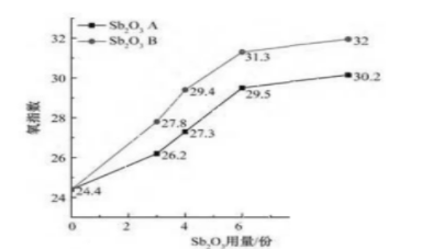 上面有二根線條,同樣是添加三氧化二銻,但是圖線的氧化指數卻不同,這是因為不同的廠家的三氧化二銻成分不同,因此造成的效果也不相同。