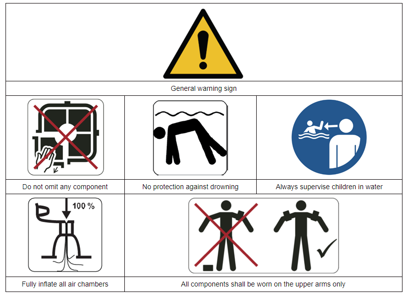 警告標簽應當印制或壓制在產品上,并在使用及穿戴中清晰可見。禁止游泳器具的警告標簽凸出高于該產品的平均表面。