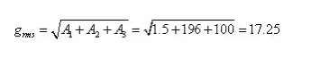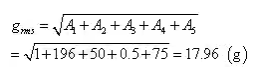 利用加速度總均方根值公式計算得: