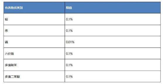 有害物質管控清單及對應限值如下:
