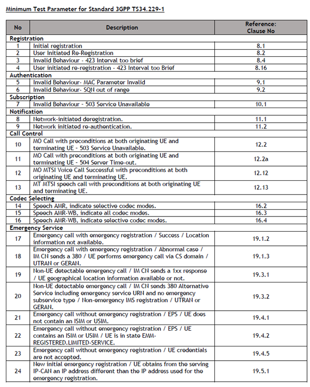 2021年2月25日,SIRIM MCMC根據3gp TS 34.229-1和3G網絡日落計劃更新了VoLTE認證的最低測試參數。